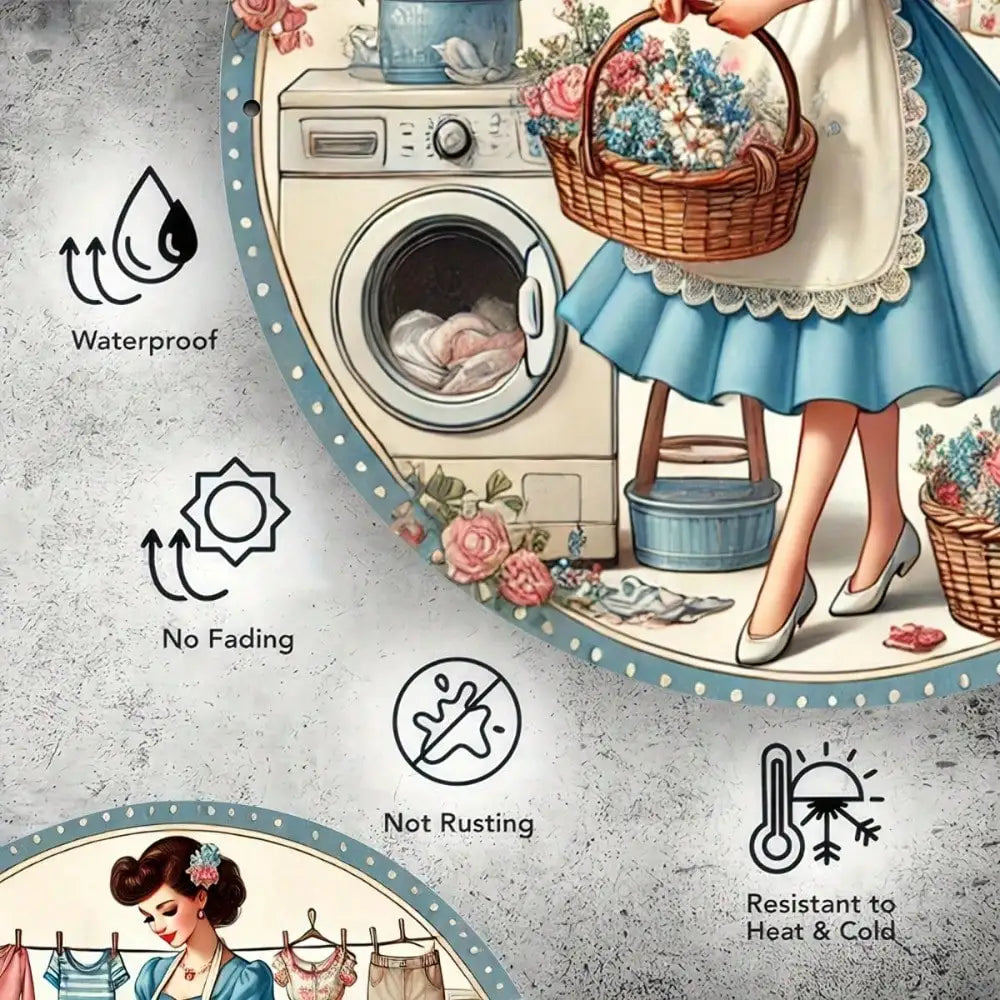 1pc 8x8" Vintage Washing Girl Metal Sign,Home/,Wall Sculpture