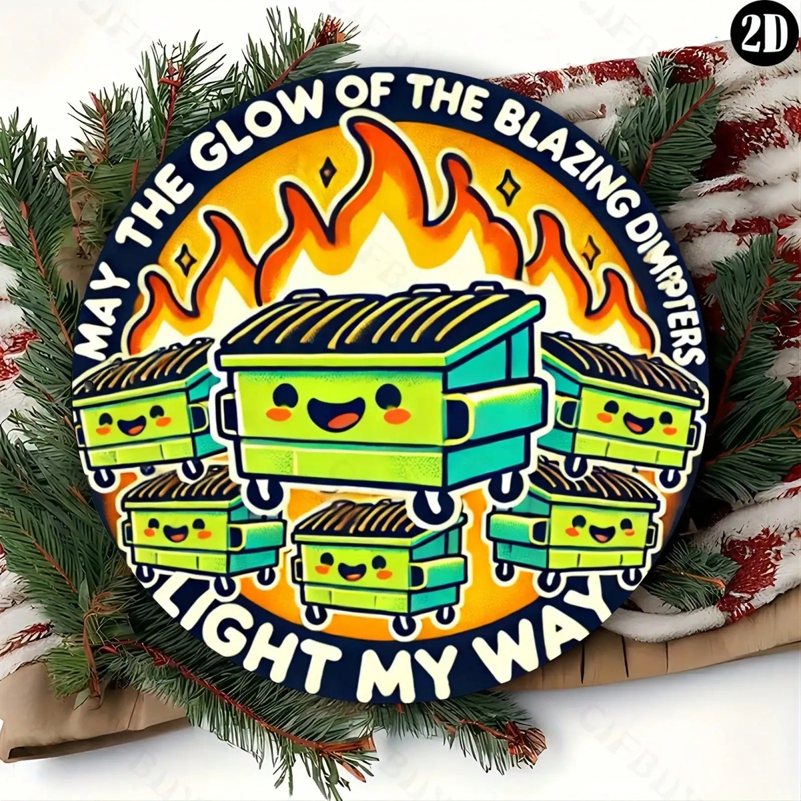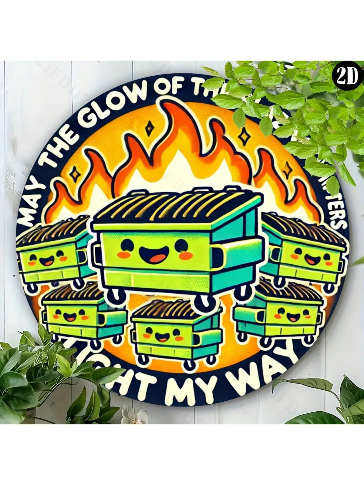 8x8" Vintage 'Dumpster Fire' Metal Sign,