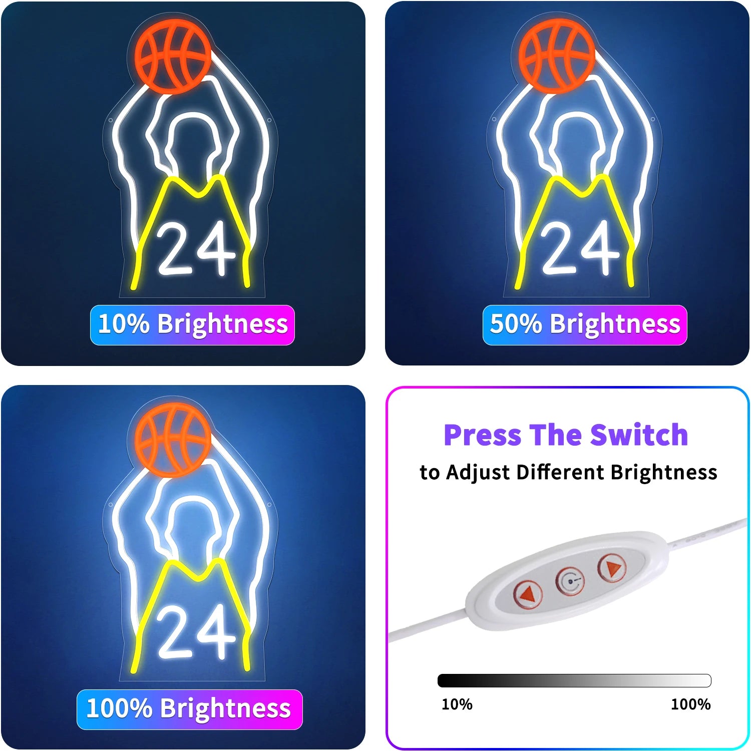 Dimmable LED Neon Sign for Wall Decoration, Sports Basketball Sign