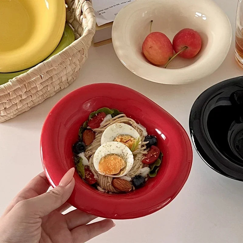 Ins Ceramic Saucer Korean Style Dessert Yogurt Oats Bowl Cream Color Fruit