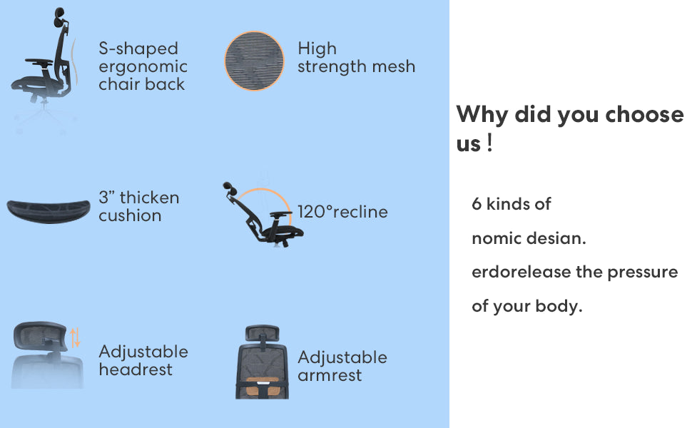 New Ergonomic Adjustable Lumbar Support Chair 120°Tilt High Back with Soft Flip Up Arms