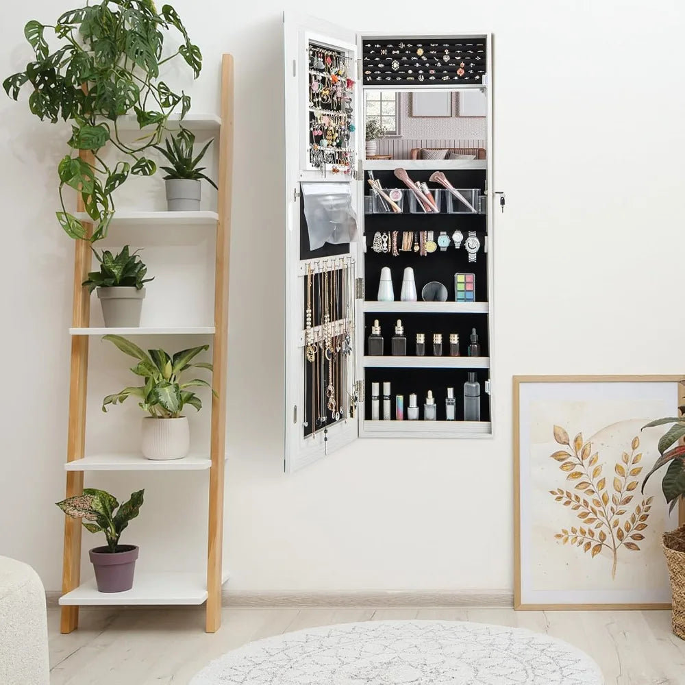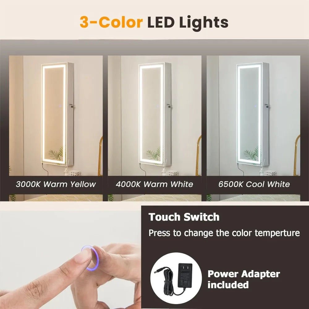 Wall-Mounted Jewelry Cabinet with Touchscreen Lighted Mirror, 47.2" Full-Length, Lockable,